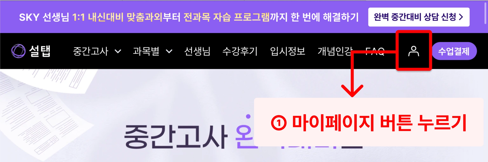 설탭 마이페이지 버튼을 누른 뒤, 설탭 계정으로 로그인을 해주세요!