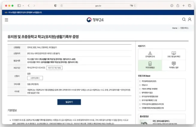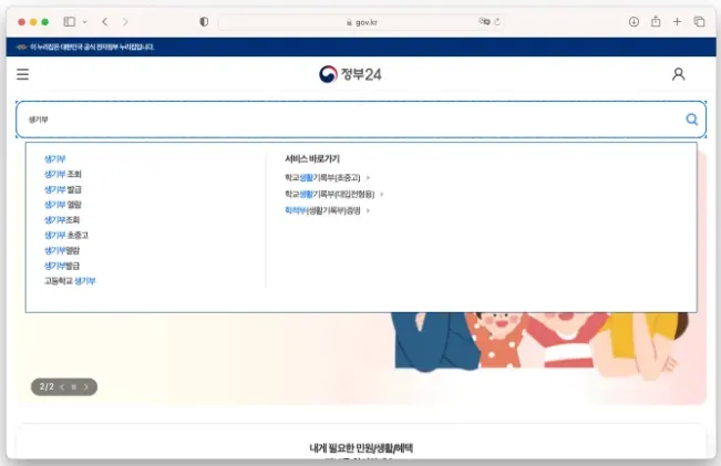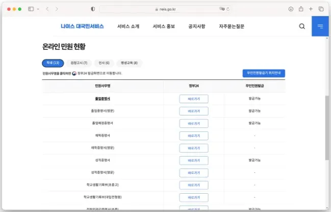 나이스와 정부24에서는 이전 학년까지의 생기부 내용만 확인 가능하고, 그 해의 생기부는 확인할 수 없습니다.