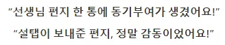 저마다 다른 이야기였지만, 모든 메시지에서 공통적으로 느껴진 점은 바로 선생님으로서의 강한 자부심이었습니다.